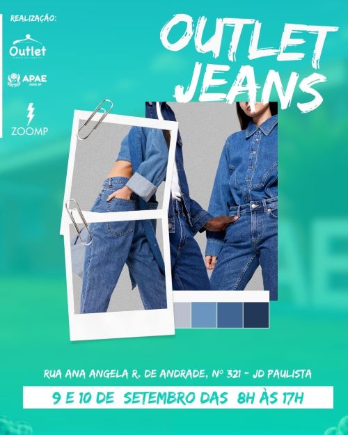 Nos dias 09 e 10 de setembro, a cidade de Assis receberá novamente o Outlet Jeans Beneficente Direto da Fábrica, que será realizado na sede da APAE de Assis, localizada na Rua Ana Ângela R. Andrade, nº 321 – Jardim Paulista.
