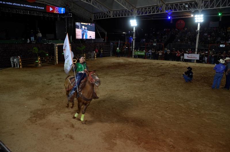 A noite desta sexta-feira (5) foi especial na 31ª Festa do Tropeiro de Tarumã. Além da sequência de montarias que levantaram o público no recinto, a data também marcou o aniversário da prefeita Adriana Roncada, que acompanhou a programação ao lado de autoridades municipais e regionais.