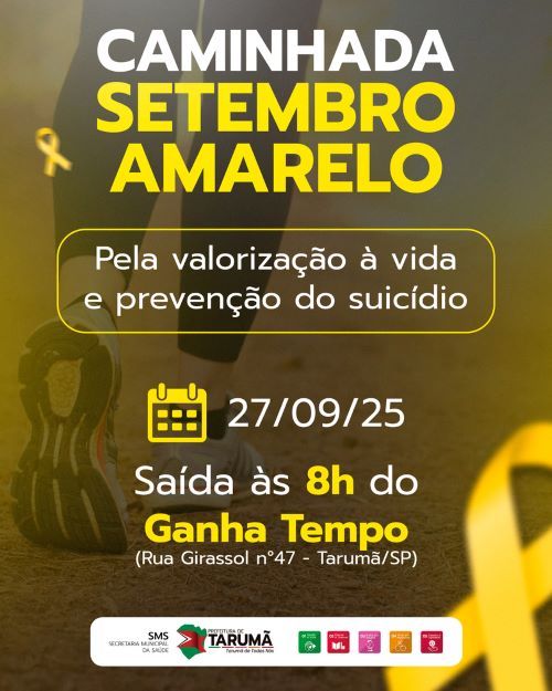 A Prefeitura Municipal de Tarumã convida toda a população para participar da Caminhada Setembro Amarelo, uma ação que tem como objetivo conscientizar sobre a prevenção ao suicídio e reforçar a importância da valorização da vida.