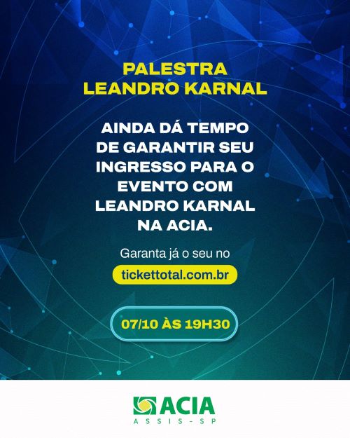 O evento acontece nesta terça-feira, 7 de outubro, às 19h30, no Salão de Eventos da ACIA – Associação Comercial e Industrial de Assis.