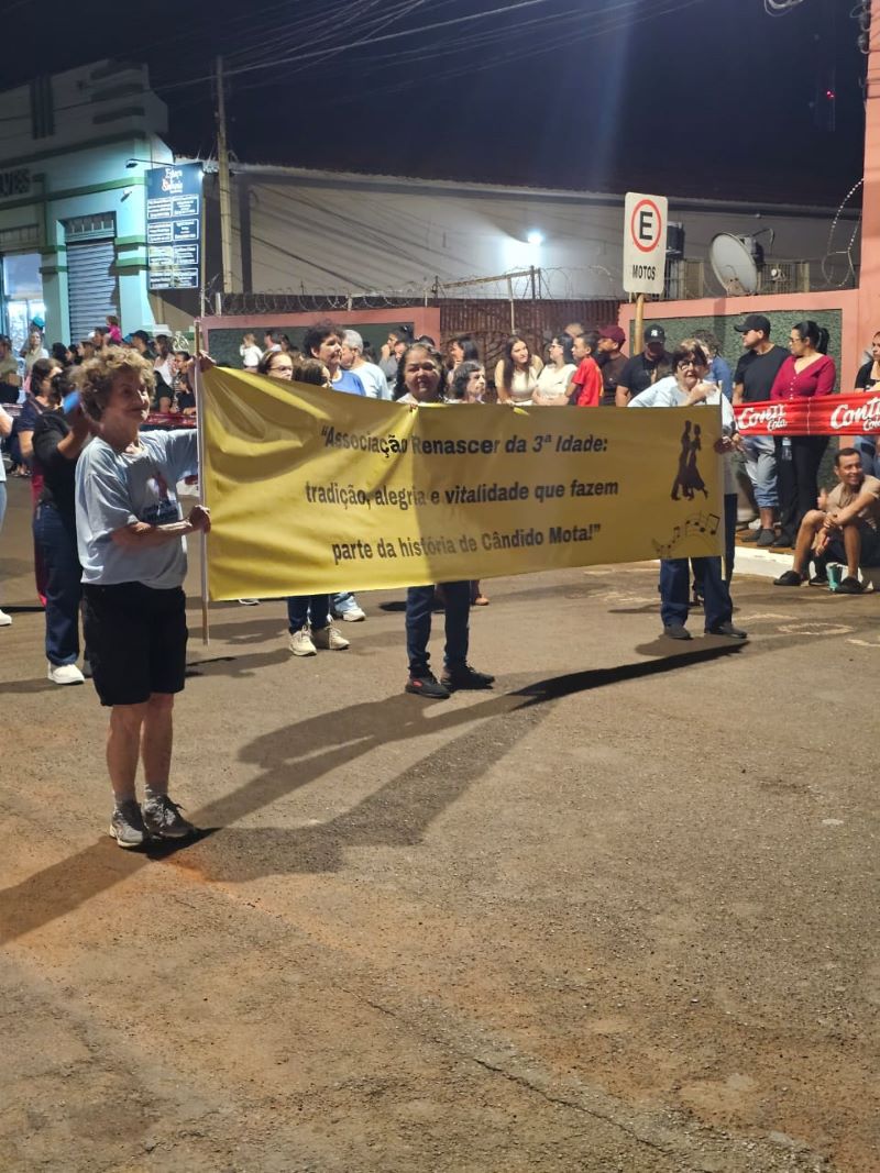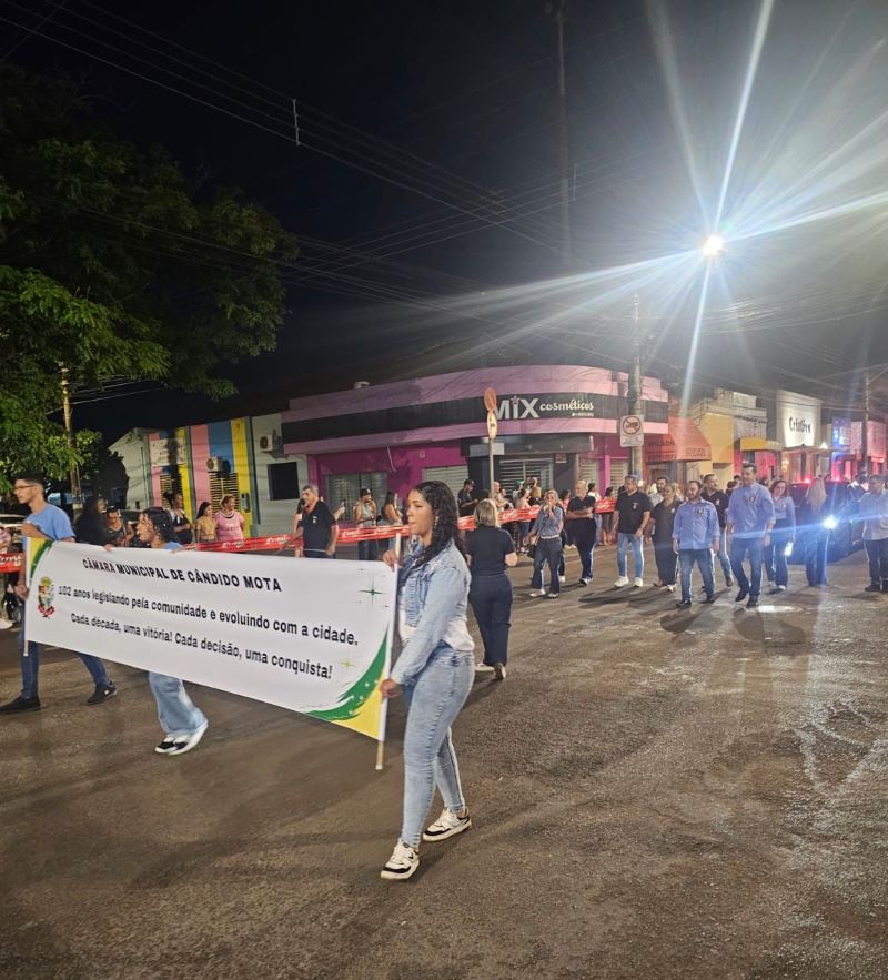 “Gratidão a Deus pela nossa cidade. Foi uma noite maravilhosa. Mais um ano com o nosso tradicional Desfile Cívico que foi um sucesso. Um momento emocionante graças a presença de tantas entidades, escolas, bandas, grupos, autoridades e toda a população que prestigiou com muito carinho. Não há como expressar em palavras a nossa gratidão a cada família cândido-motense e a cada colaborador que fez acontecer o nosso desfile. Parabéns Cândido Mota. Deus abençoe a todos”, agradeceu o prefeito Eraldo Enfermeiro.