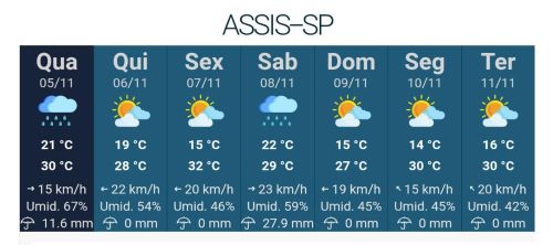 A Defesa Civil emitiu um alerta na manhã desta quarta-feira, 5 de novembro, para a chegada de uma forte chuva que avança em direção a Assis e municípios vizinhos. A previsão indica precipitação intensa acompanhada de raios e ventos fortes nas próximas horas.