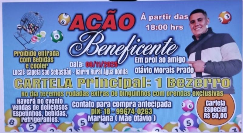 A ação tem como objetivo arrecadar recursos para auxiliar Otávio e sua família nas despesas médicas e em seu tratamento, contando com o apoio de amigos e moradores da cidade e região em uma noite de solidariedade.