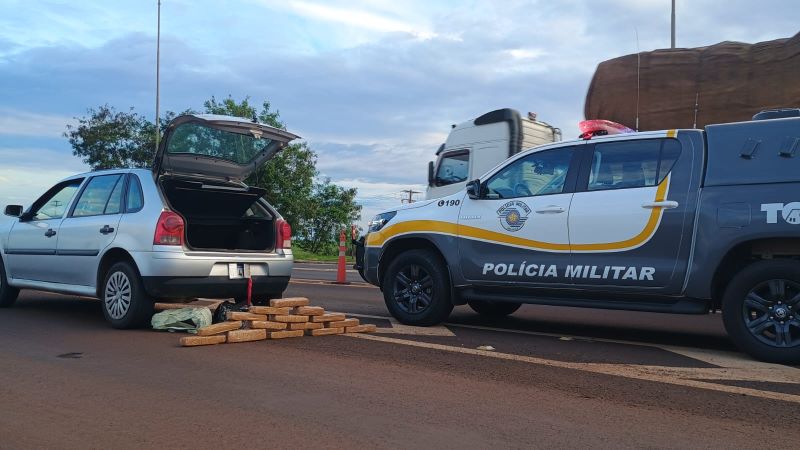 Dupla transportava 16 tijolos de maconha no porta-malas de um VW/Gol.