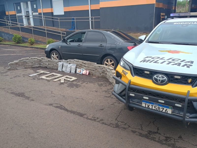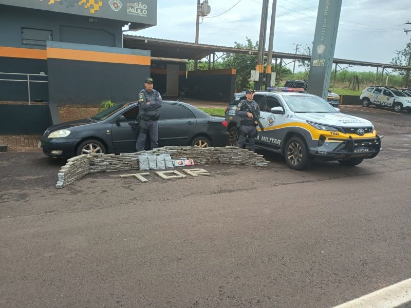 Durante patrulhamento da Operação Impacto, uma equipe do TOR (Tático Ostensivo Rodoviário) abordou um Toyota/Corolla ocupado por um homem de 29 anos e uma adolescente de 17, ambos moradores do Paraná. No porta-malas, os policiais encontraram uma expressiva quantidade de entorpecentes embalados em plástico.