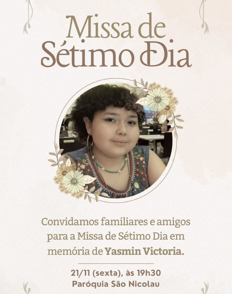 Família de Yasmin Victória convida para Missa de Sétimo Dia