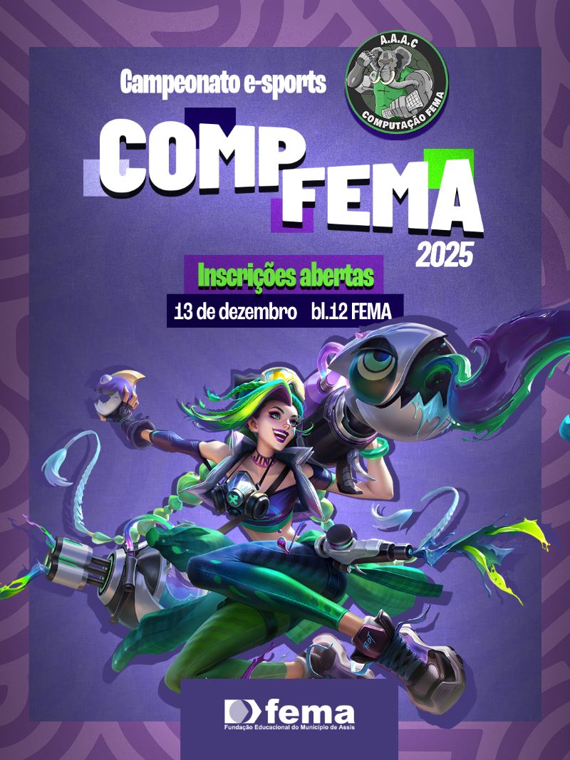 A Fundação Educacional do Município de Assis (FEMA) sediará, no dia 13 de dezembro de 2025, a segunda edição do Campeonato de E-Sports, com disputas em três jogos muito populares entre os gamers: Valorant, League of Legends (LoL) e EA Sports FC 25, ambas realizadas no Bloco 12 da FEMA.