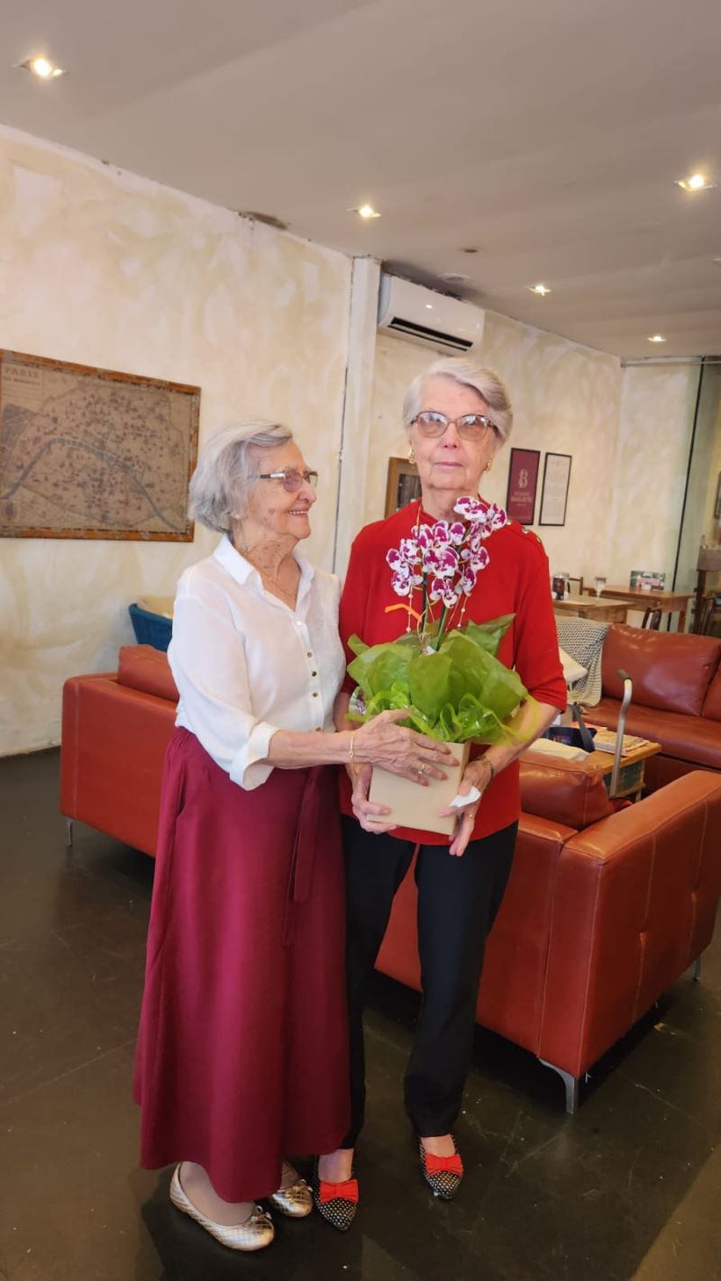 A coordenadora Gerda Kewitz foi homenageada pelas alunas com flores e presentes, em reconhecimento e gratidão pela excelente atuação à frente da UATI.