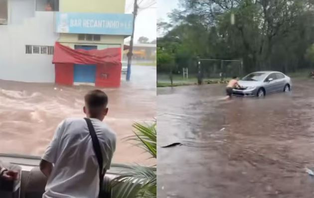Moradores registraram vídeos nas redes sociais mostrando ruas completamente alagadas, além de carros e motos sendo arrastados pela força da enxurrada. Equipes da Defesa Civil e da Prefeitura continuam cuidando dos danos causados pelo temporal.