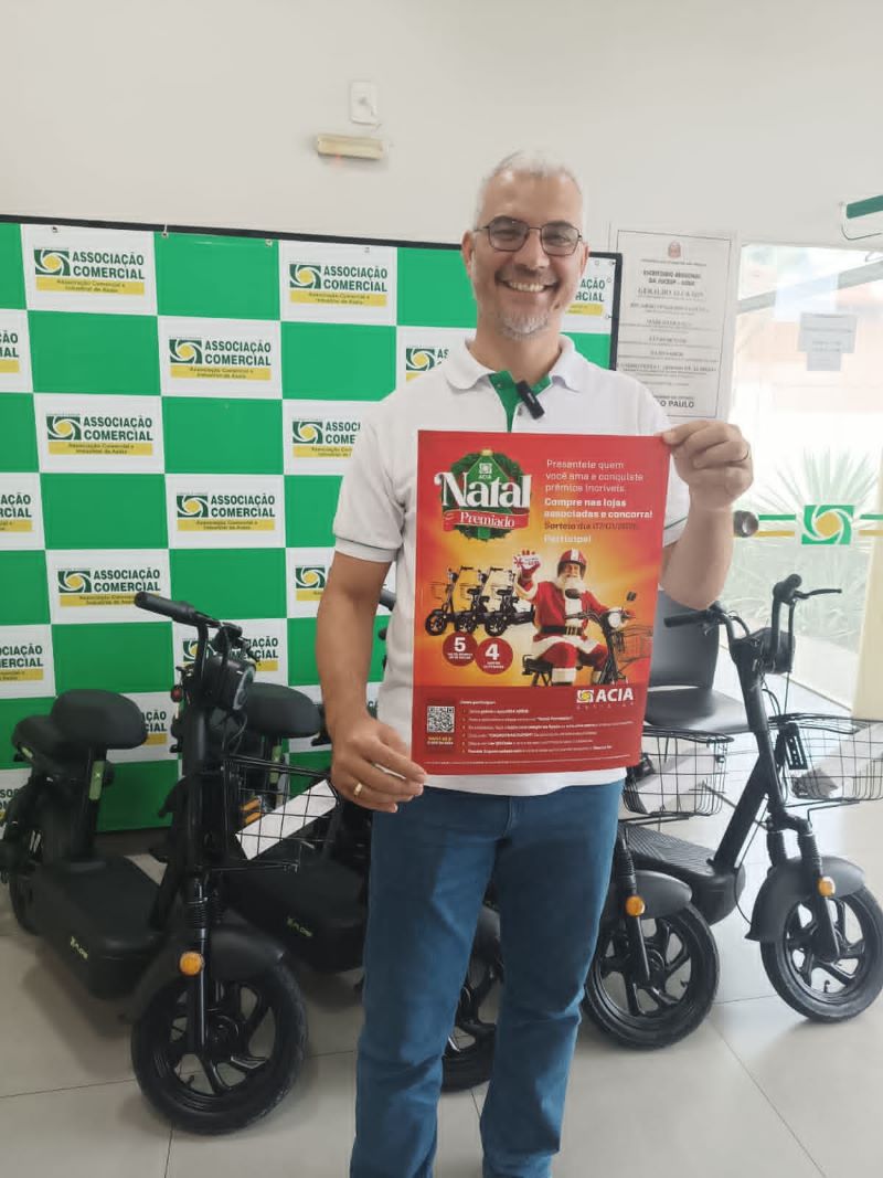 De acordo com Fernando Rocha, gerente executivo da ACIA, neste ano, a campanha sorteará quatro motos elétricas, cinco vale-compras de R$ 500, destinados aos clientes, e nove vale-compras de R$ 300,00 exclusivos para vendedores das lojas participantes, valorizando também quem está na linha de frente do atendimento.