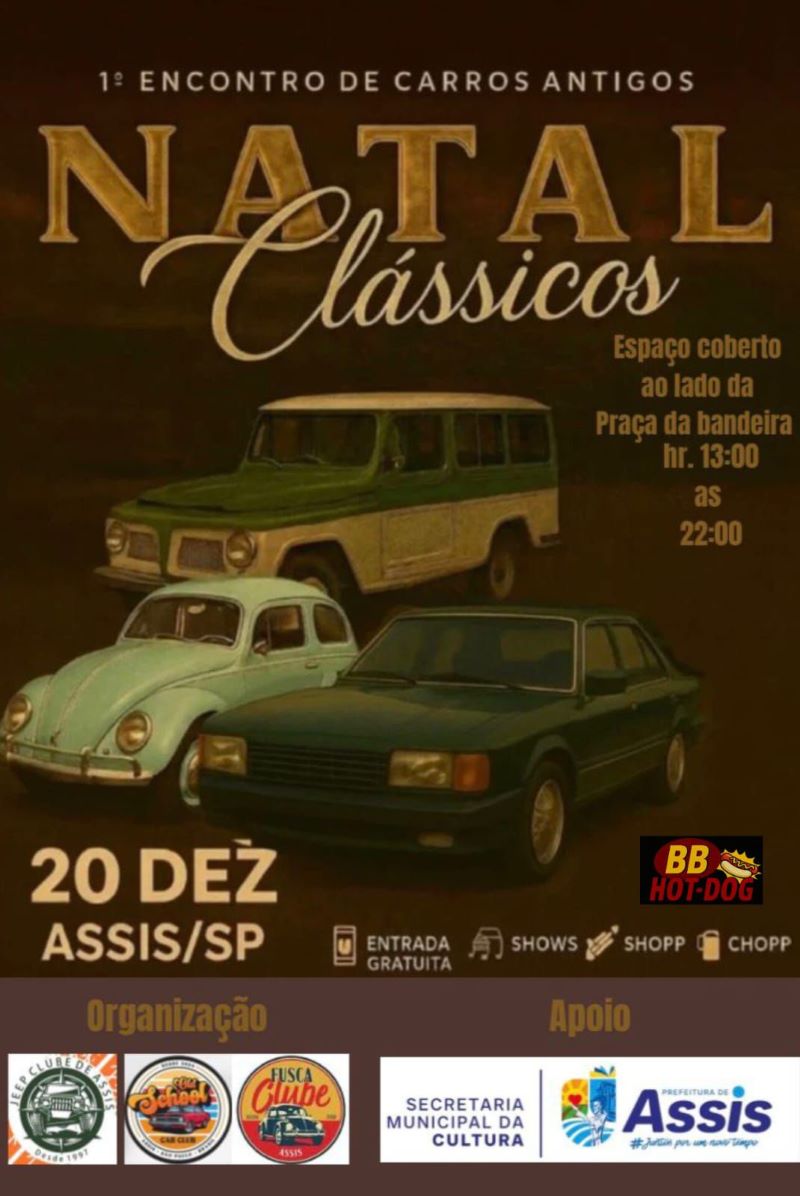 Assis recebe neste sábado, 20, o 1º Encontro de Natal de Carros Antigos e Jeep, um evento que promete reunir apaixonados por veículos clássicos, música e gastronomia em um clima de confraternização natalina. A entrada é gratuita e aberta a toda a população.
