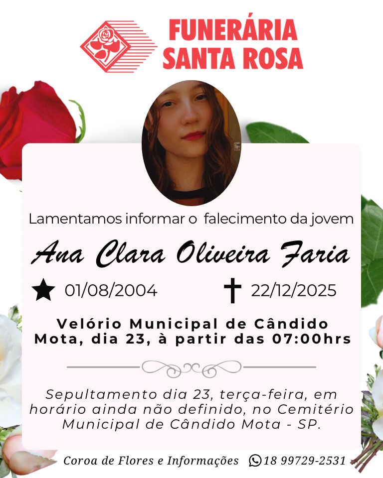 Ana Clara será velada no Velório Municipal de Cândido Mota, a partir das 7 horas de terça-feira, 23. O sepultamento ainda não tem horário definido.