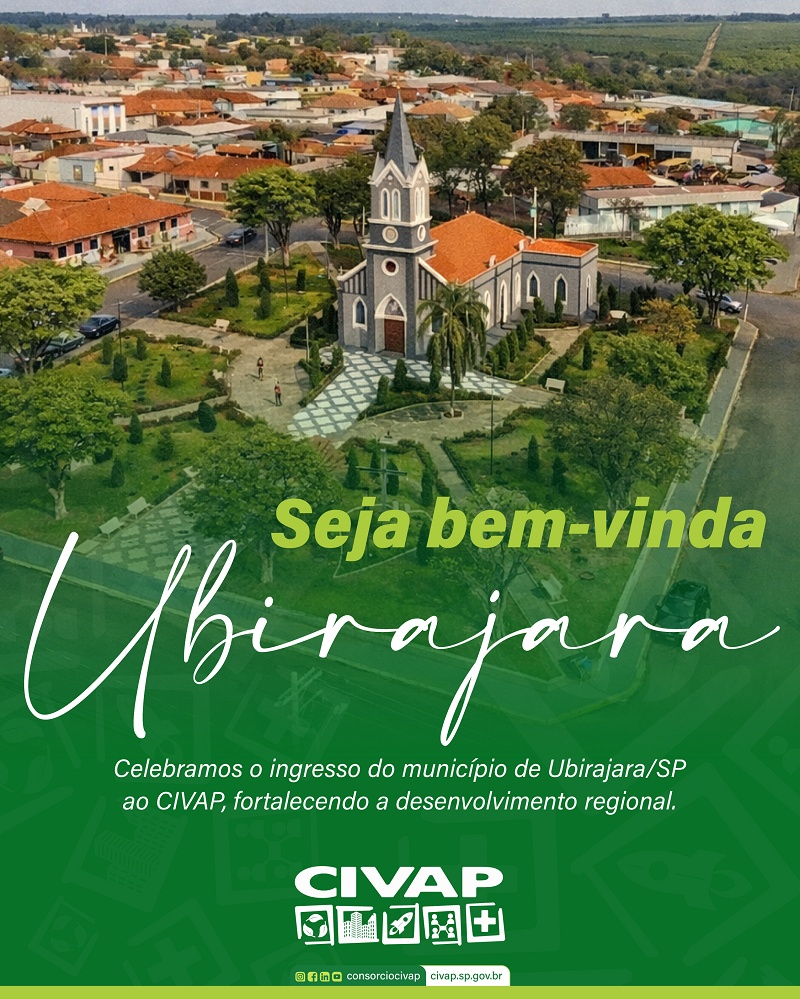 Em nome da Diretoria do CIVAP, representada pelo seu presidente e prefeito de Cruzália, Arildo Osmar de Moro, o Consórcio dá as boas-vindas ao município de Ubirajara, desejando uma parceria sólida, produtiva e voltada ao fortalecimento da gestão pública e do desenvolvimento regional.