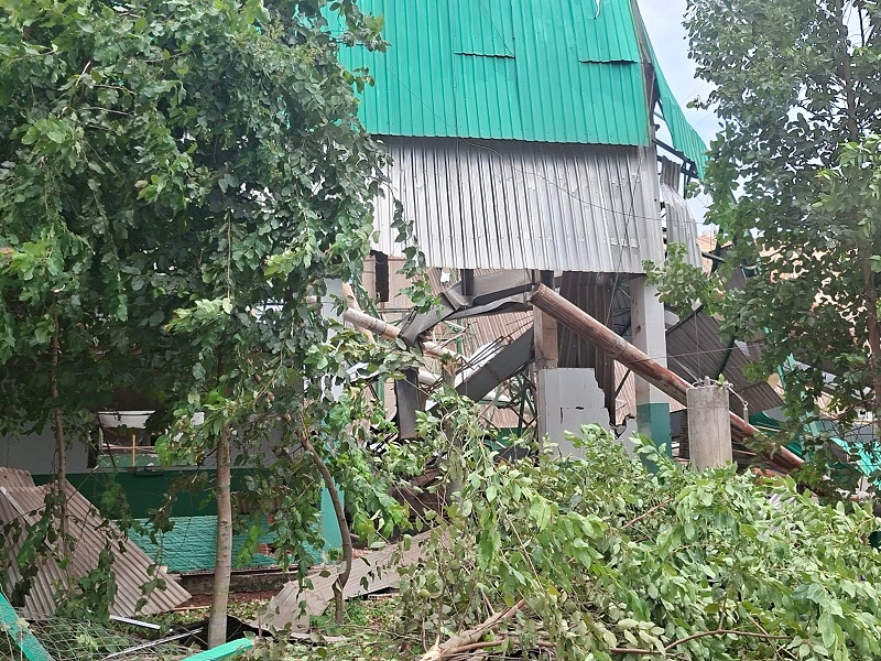 Estrutura do silo ficou parcialmente destruída após explosão na manhã deste domingo (22), com pilares rompidos e destroços espalhados pela área. Foto Abordagem