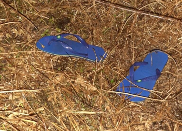 O par de chinelos do garoto foi encontrado do lado de fora do alambrado. Foto: Arquivo pessoal
