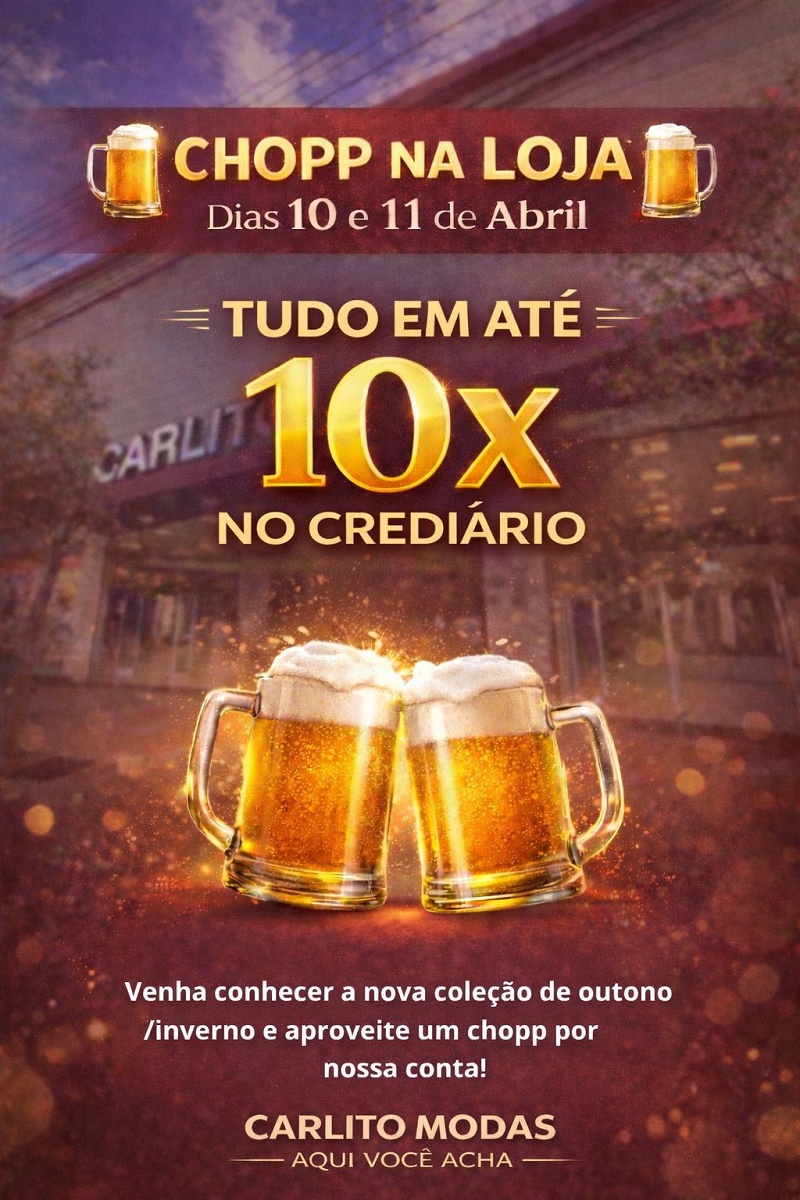 A tradicional loja Carlito Modas, em Assis, preparou uma programação especial para marcar a chegada da nova coleção outono/inverno. Nos dias 10 (sexta-feira) e 11 de abril (sábado), os clientes que visitarem o espaço poderão, além de conferir as novidades, aproveitar um chopp oferecido pela loja.