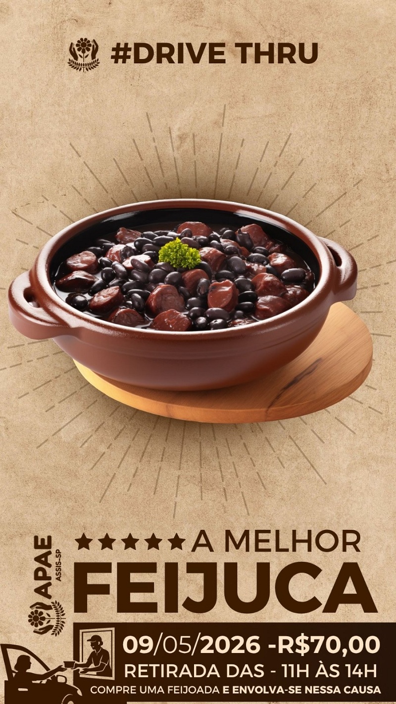 A APAE de Assis realiza no próximo dia 9 de maio mais uma edição da tradicional Feijoada Solidária, um evento que já faz parte do calendário da instituição e mobiliza a comunidade em torno de uma causa importante.