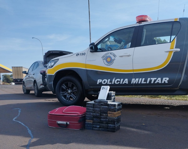 Durante a Operação Impacto, os policiais abordaram um veículo Hyundai HB20 e, após vistoria, localizaram aproximadamente 50 aparelhos iPhone 17 Pro Max 512 GB acondicionados em uma mala no porta-malas. Todos os produtos estavam sem documentação fiscal.